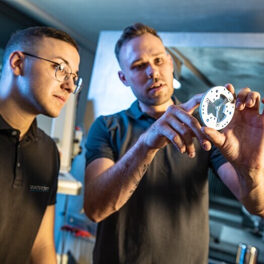 Innovation hört bei uns nicht am Werkstückrand auf. Mit einem engagierten Team in Forschung & Entwicklung treiben wir die Möglichkeiten des Wasserstrahlschneidens kontinuierlich voran. Unser Ziel: Materialien schneiden, die für Laser längst tabu sind – und das mit noch grösserer Präzision und Effizienz.