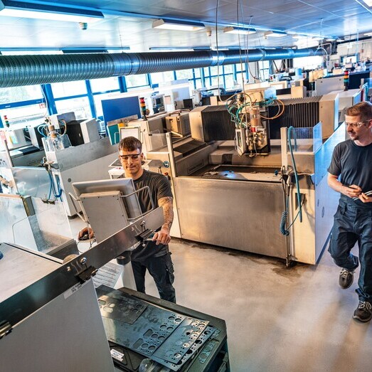 Unser Maschinenpark mit rund 50 hochmodernen Anlagen ist bewusst auf Überkapazität ausgelegt. Das bedeutet für Sie: maximale Flexibilität, kurze Reaktionszeiten und die Sicherheit, dass Ihre Liefertermine zuverlässig eingehalten werden – auch wenn es einmal richtig eilig ist.