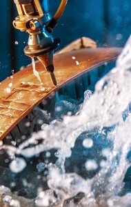 Typische Materialien sind Metalle und Metalllegierungen (z.B. Edelstahl, Titan, Aluminium), Glas, Stein, Keramik und Verbundwerkstoffe. Selbst sehr dicke Platten lassen sich exakt schneiden – ohne thermische Beeinträchtigung, ohne Härteverzug und ohne Verbrennungsränder, wie sie beim Laserschneiden häufig auftreten.