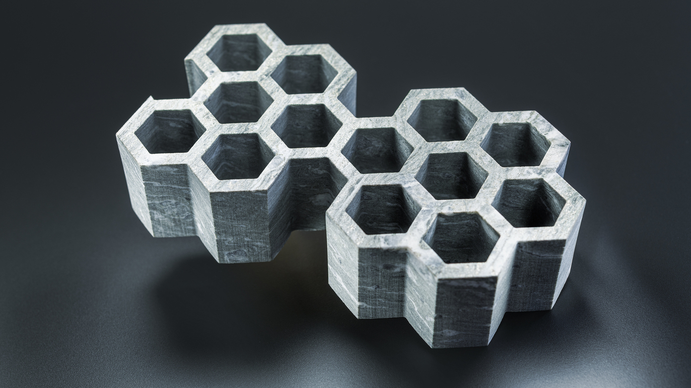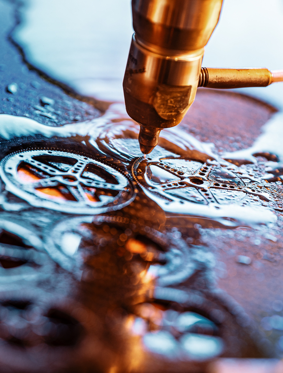 Granit, Marmor, Feinsteinzeug oder technische Keramik: Mit Wasserstrahl entstehen detailgetreue Konturen ohne Risse oder Ausbrüche – ideal für Architektur, Design und technische Anwendungen.